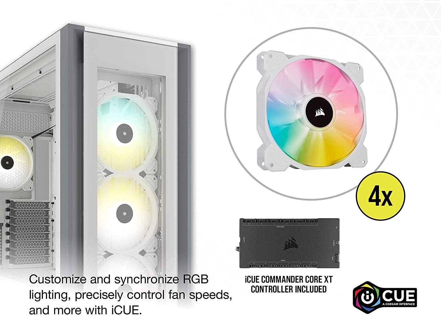 Đèn nền RGB Kiểm soát hoàn toàn và đồng bộ ánh sáng RGB cho tối đa sáu quạt với phần mềm iCUE Lighting Node CORE và CORSAIR iCUE đi kèm. |