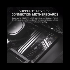 Case máy tính này được thiết kế để tương thích với các bo mạch chủ có kết nối ngược từ các hãng như Asus, MSI và Gigabyte. Tính năng này giúp tối ưu hóa luồng không khí và tạo ra một hệ thống gọn gàng, sạch sẽ, đồng thời mang lại hiệu suất làm mát tốt hơn cho toàn bộ hệ thống.