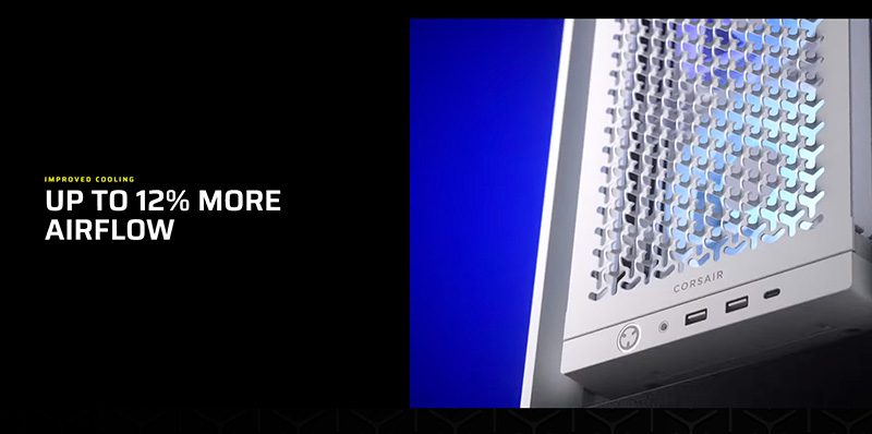Mặt trước của case được thiết kế với hoa văn 3D Y-pattern bằng thép, tăng cường luồng không khí lên đến 12% so với các thiết kế truyền thống. Thiết kế này không chỉ mang lại hiệu suất làm mát cao mà còn tạo nên vẻ ngoài hiện đại, tinh tế cho hệ thống PC của bạn.