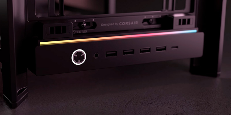 Ngoài thiết kế ấn tượng và khả năng tương thích linh hoạt, Corsair FRAME 5000D RS Airflow White CC-9011308-WW còn được trang bị cổng I/O tiện dụng ở mặt trên, bao gồm 2 x USB 3.0, 1 x USB Type-C, 1 x Audio combo jack giúp người dùng kết nối nhanh chóng với các thiết bị ngoại vi. Nút nguồn và reset được thiết kế nhạy và bố trí hợp lý, tạo sự thuận tiện khi thao tác. Toàn bộ cổng kết nối đều được hoàn thiện cao cấp, đảm bảo tuổi thọ và độ ổn định trong suốt quá trình sử dụng. Đây là điểm cộng lớn cho người dùng văn phòng, gamer hoặc streamer cần thao tác thường xuyên với thiết bị ngoại vi.