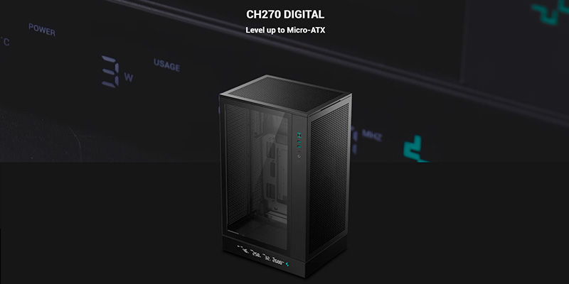 CH270 Digital hỗ trợ tản nhiệt liquid AIO đến 360mm ở mặt bên, tản nhiệt 120mm ở đáy, cùng hệ thống quạt thông minh gồm 3 vị trí gắn quạt 120mm hoặc 2x140mm bên hông, 2 quạt 120mm phía trên và 1 quạt 120mm đáy. Cấu trúc lưới thông gió toàn diện cùng bốn khe PCIe độc lập giúp tăng hiệu quả tản nhiệt và hỗ trợ build đa dạng.