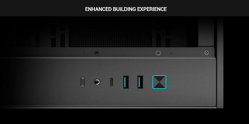 Case trang bị 2 cổng USB 3.0, 1 cổng USB Type-C Gen2 tốc độ cao và jack âm thanh/mic combo 3.5mm, phục vụ tốt cho người dùng thường xuyên kết nối thiết bị ngoại vi. Tấm lọc bụi ở tất cả các mặt quan trọng giúp giữ sạch không gian bên trong, dễ dàng tháo lắp để vệ sinh định kỳ.