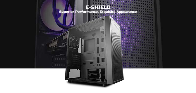 Case máy tính Deepcool E-SHIELD Case Deepcool E-SHIELD là mẫu Case được trang bị tấm kính cường lực ở phía bên trái để thể hiện toàn bộ thành phần của cấu trúc đắt giá bên trong. |