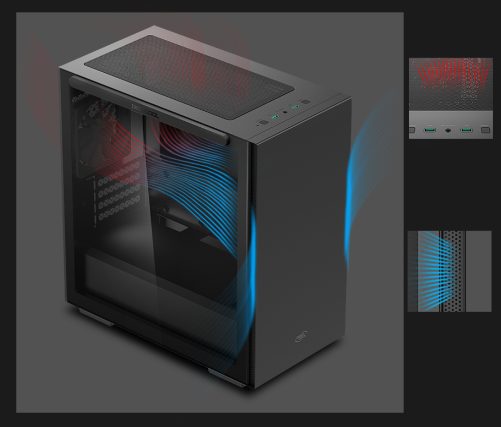 Case máy tính Deepcool MACUBE 110 Tối ưu luồng khí Thiết kế tối ưu khả năng làm mát hệ thống của bạn, hoàn thiện mặt phía trước bằng thép để hút không khí tối ưu hơn. |