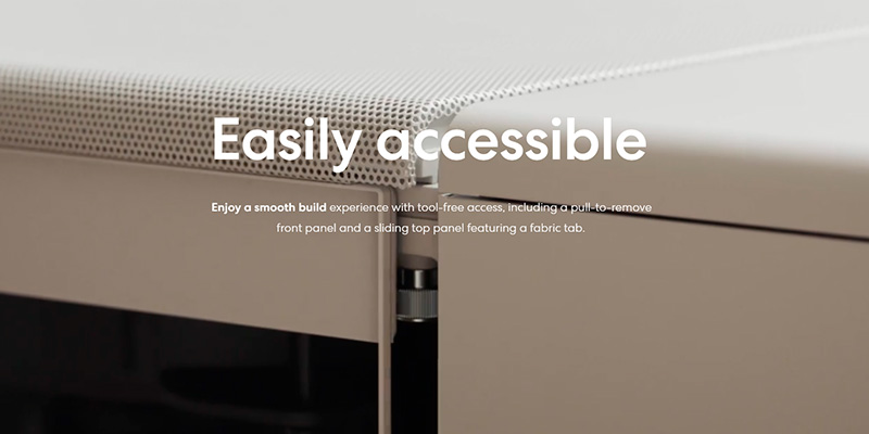 Fractal luôn hướng đến trải nghiệm người dùng, và Epoch TG cũng không ngoại lệ. Case hỗ trợ tháo lắp không cần dụng cụ (tool-less) cho mặt hông, mặt trước và mặt trên, giúp quá trình bảo trì, thay linh kiện hoặc dọn bụi trở nên dễ dàng hơn bao giờ hết. Mặt trên được thiết kế dạng trượt mở nhanh với tab vải kéo tinh tế, đồng thời mặt kính cường lực có thể tháo gọn chỉ bằng một thao tác. Đây là điểm cộng lớn cho người dùng thường xuyên nâng cấp hoặc tùy chỉnh dàn PC.