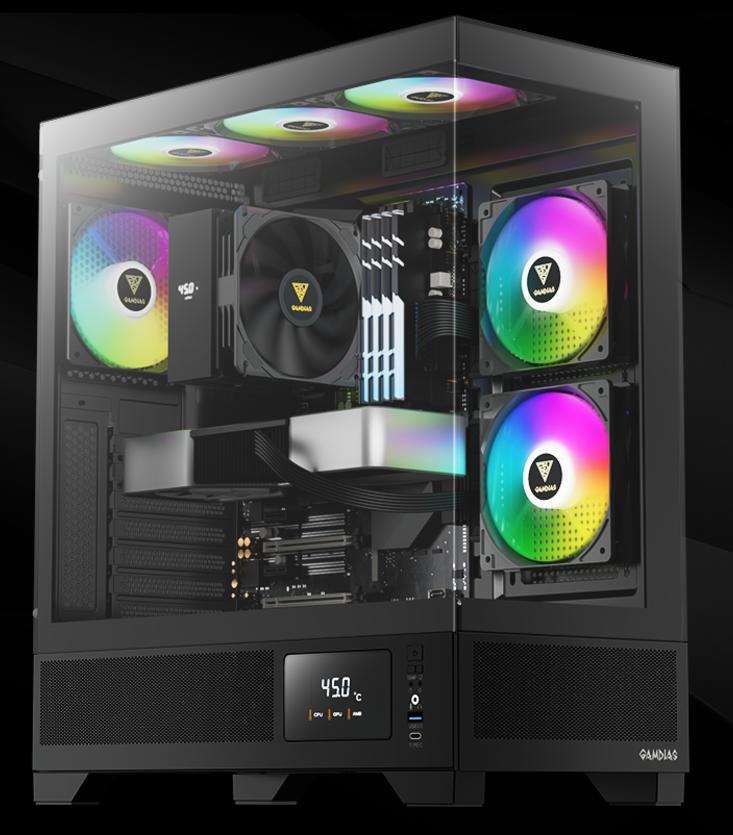 Case máy tính Gamdias Atlas M1 Black CAATLASM1BLGA Sản Phẩm Mới - Thiết Kế Mới! Series case ATLAS M1 bao gồm phiên bản trắng và đen. Case có các lỗ thông hơi, kèm 3 quạt ARGB PWM tích hợp để có luồng khí tối ưu và màn hình digital để thể hiện thông tin hệ thống theo thời gian thực. |