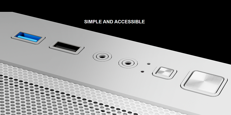 Thiết kế mặt trước dạng lưới tổ ong thoáng khí giúp tối đa hóa luồng không khí đi vào case, giảm nhiệt độ tổng thể cho hệ thống và giữ cho các linh kiện luôn hoạt động trong điều kiện lý tưởng. Lớp lưới còn có tác dụng lọc bụi, dễ tháo vệ sinh, giúp duy trì độ bền cho linh kiện bên trong qua thời gian dài sử dụng.