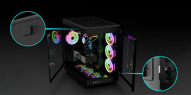 Case máy tính Gamdias NESO P1 B với cơ chế 1 chạm đơn giản, giúp bạn dễ dàng mở case để thay đổi và vệ sinh các phụ kiện bên trong. Ngoài ra, các mặt bên bằng kính cường lực có bản lề kép có thể tháo rời để nâng cao trải nghiệm thay đổi.
