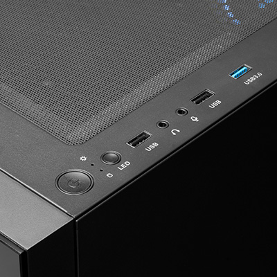 Cổng kết nối Bảng điều khiển I / O mặt trước bao gồm cổng USB 3.0/ 2.0 cùng giắc cắm âm thanh/ micrô. |