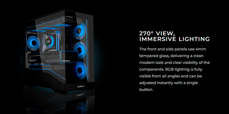 Để tôn lên vẻ đẹp của hệ thống PC, Lian Li trang bị cho Vector V100R MINI tấm vách hông bằng kính cường lực trong suốt và dày dặn. Mặt kính này không chỉ có tác dụng chống trầy xước, bảo vệ an toàn cho các linh kiện đắt tiền bên trong mà còn đóng vai trò như một "bức tranh" để bạn phô diễn toàn bộ hệ thống tản nhiệt, card đồ họa và các dải đèn LED RGB rực rỡ của mình. Cơ chế tháo lắp thông minh cũng giúp bạn dễ dàng vệ sinh hoặc thay thế linh kiện mà không mất quá nhiều thời gian.