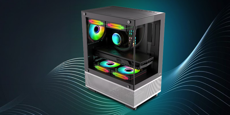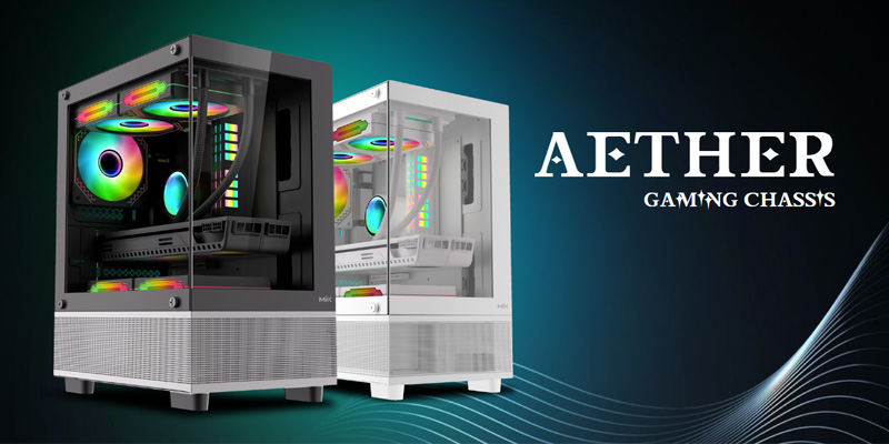 Case máy tính MIK AETHER White trang bị mặt kính cường lực ở mặt hông và mặt trước khoe nội thất bên trong và hệ thống đèn led RGB.