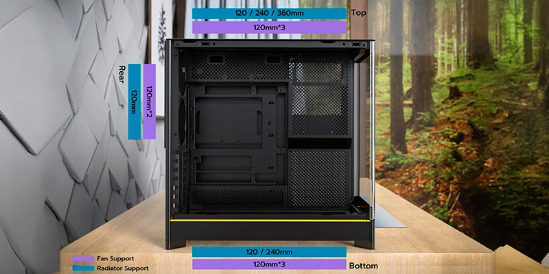 Không chỉ mạnh mẽ với quạt khí, Montech HS02 PRO còn tương thích với nhiều kích cỡ radiator tản nhiệt nước gồm 120mm, 240mm và 360mm ở mặt trên, cũng như 120mm hoặc 240mm ở đáy, đáp ứng hoàn hảo nhu cầu làm mát cho các hệ thống hiệu năng cao. Thiết kế khung mở rộng cho phép lắp đặt radiator lớn mà vẫn đảm bảo không gian thoáng, giúp PC hoạt động ổn định và bền bỉ trong thời gian dài.