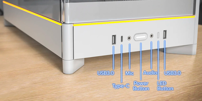 HS02 PRO được trang bị đầy đủ cổng USB 3.0 x2, Type-C x1, Mic, Audio và nút LED riêng biệt, mang đến sự tiện lợi trong quá trình sử dụng hằng ngày. Cổng Type-C tốc độ cao cho phép kết nối thiết bị ngoại vi hiện đại như ổ SSD di động, smartphone hay dock dữ liệu. Ngoài ra, bộ lọc bụi ở đáy có thể tháo rời dễ dàng giúp việc vệ sinh định kỳ trở nên nhanh chóng, đảm bảo không khí lưu thông tốt và giữ linh kiện luôn sạch sẽ, kéo dài tuổi thọ hệ thống.