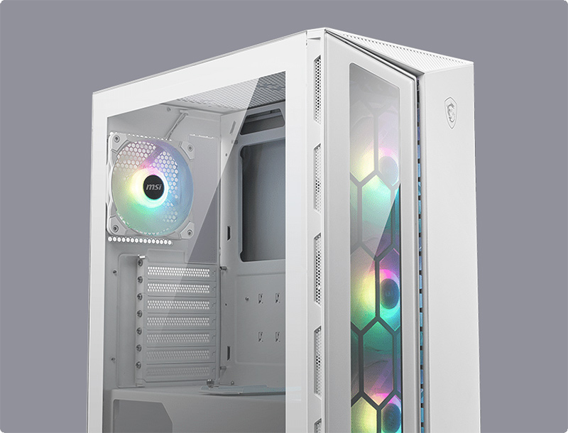 Trang bị mặt kính cường lực Case máy tính MSI MPG GUNGNIR 110R WHITE trang bị mặt kính cường lực bên hông để show khả năng ấn tượng cùng hiệu năng tuyệt vời cũng như đèn nền ARGB. |