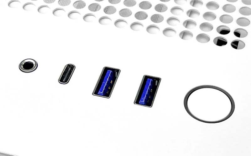 Cổng kết nối Bảng điều khiển I / O mặt trước bao gồm cổng USB 3.2 Type-A và Type-C cùng giắc cắm âm thanh/ micrô. |
