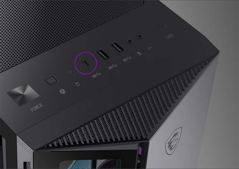 Cổng kết nối Bảng điều khiển I / O mặt trước bao gồm cổng USB 3.2 Type-A và Type-C cùng giắc cắm âm thanh/ micrô. |