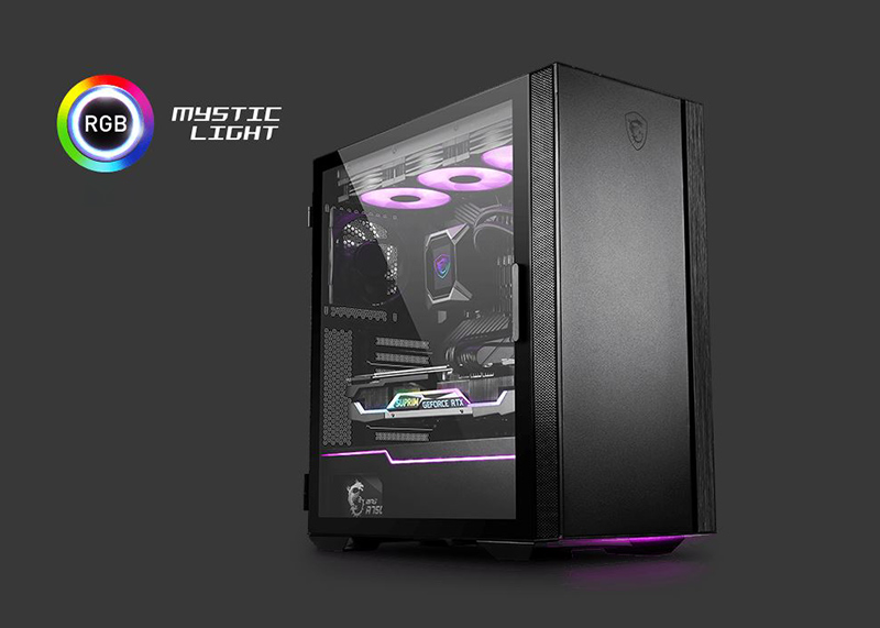 Đèn RGB Mặt trước của Case máy tính MSI MPG QUIETUDE 100S được trang bị kính cường lực trong suốt để bạn dễ dàng tận hưởng những khoảnh khắc tuyệt vời do hiệu ứng đèn RGB mang lại. |