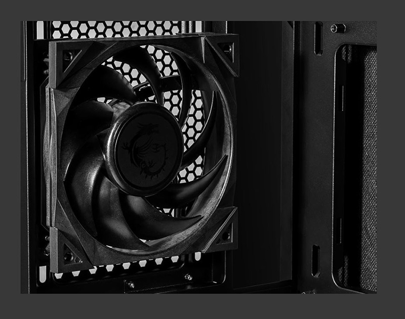 Quạt MEG SILENT GALE P12 Case máy tính MSI MPG QUIETUDE 100S tăng khả năng chống ồn nhờ vào Fan MEG SILENT GALE P12 và bọt giảm âm, tạo ra luồng không khí đủ để làm mát hệ thống trong khi vẫn duy trì độ ồn thấp. |
