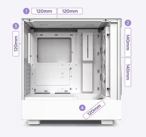 Tối ưu luồng không khí Case máy tính NZXT H5 Elite hỗ trợ gắn tối đa lên đến 7 Fan 120mm và bộ tản Raditor để tối ưu hóa luồng không khí bên trong, giúp các chi tiết mát hơn và có được độ bền tốt nhất. |