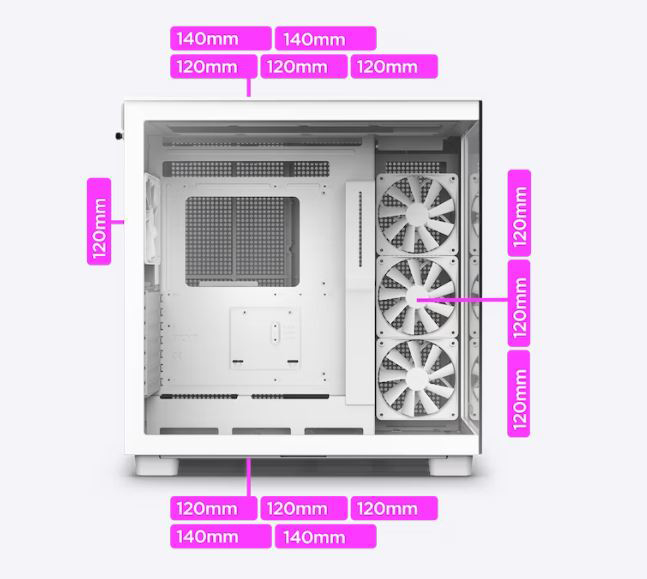 Tối ưu luồng không khí Case máy tính NZXT H9 Flow hỗ trợ gắn tối đa lên đến 10 Fan 120mm và bộ tản Raditor để tối ưu hóa luồng không khí bên trong, giúp các chi tiết mát hơn và có được độ bền tốt nhất. |