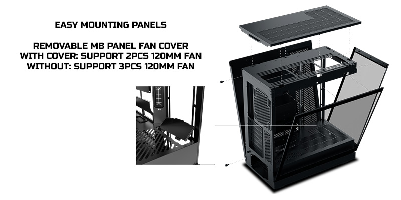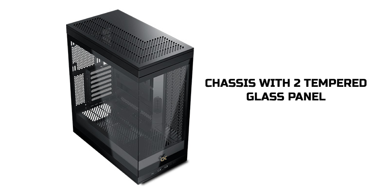 Phần bên hông case được trang bị tấm kính cường lực cao cấp, cho phép bạn dễ dàng khoe trọn vẻ đẹp của các linh kiện bên trong như bo mạch chủ, hệ thống đèn RGB, và các thiết bị lưu trữ cao cấp. Tấm kính này không chỉ tạo điểm nhấn về thiết kế mà còn có độ bền cao, chống trầy xước tốt.