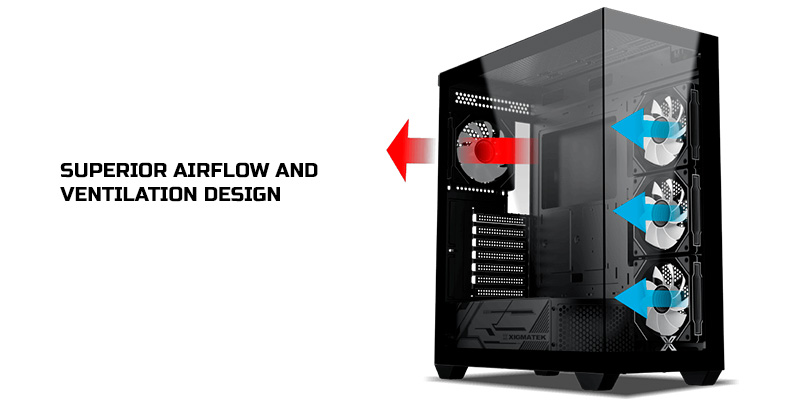 XIGMATEK BLAST 4GF EN44908 được trang bị sẵn 4 quạt RGB, mang lại khả năng làm mát vượt trội và đồng thời tạo hiệu ứng ánh sáng đẹp mắt. Thiết kế tối ưu luồng không khí đảm bảo các linh kiện luôn hoạt động ổn định ngay cả khi chạy các tác vụ nặng. Hệ thống quạt này không chỉ làm mát hiệu quả mà còn tăng tính thẩm mỹ cho dàn máy của bạn.
