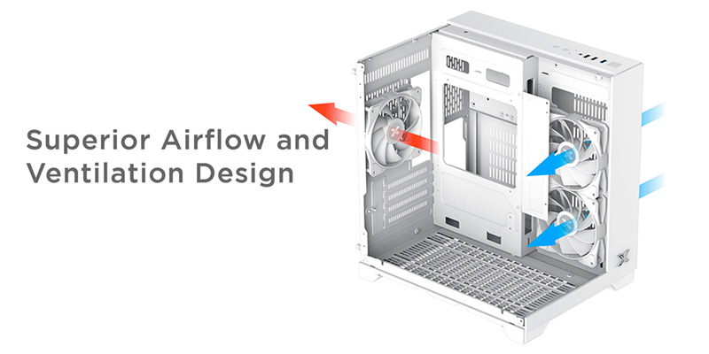 Case máy tính XIGMATEK OCEAN M NANO ARCTIC EN45417 hỗ trợ tối đa hệ thống làm mát với khả năng lắp đặt lên đến 5 quạt làm mát hoặc bộ tản nhiệt nước 240mm ở phía trước và phía trên. Cấu trúc thiết kế thông thoáng cùng hỗ trợ tối ưu cho các giải pháp tản nhiệt giúp bảo vệ linh kiện khỏi tình trạng quá nhiệt trong các phiên làm việc và chơi game dài.