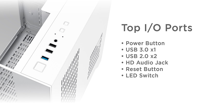 Case XIGMATEK OCEAN M NANO ARCTIC EN45417 được trang bị bảng điều khiển I/O hiện đại với các cổng kết nối như USB 3.0, USB 2.0, và jack âm thanh 3.5mm, cho phép bạn kết nối nhanh chóng với các thiết bị ngoại vi. Thiết kế thông minh này đảm bảo sự tiện lợi tối đa trong quá trình sử dụng hàng ngày.