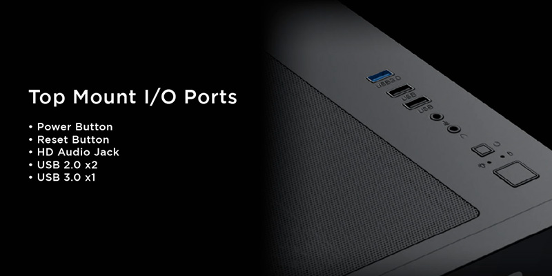 XIGMATEK PANO M NANO 3GF EN45523 được trang bị đầy đủ các cổng kết nối bao gồm USB 3.0, USB 2.0, cổng audio và micro, mang lại sự tiện lợi tối ưu khi sử dụng. Các cổng này được bố trí ở mặt trên, dễ dàng truy cập ngay cả khi case đặt trên sàn hoặc bàn làm việc.