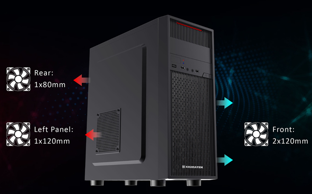 Khả năng tản nhiệt Khả năng tản nhiệt được cải thiện nhờ XIGMATEK XA-22 hỗ trợ tối đa đến 4 Fan giúp tối ưu hóa luồng không khí và giữ độ bền tốt nhất cho các linh kiện bên trong |