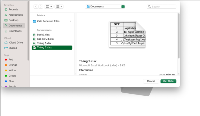 Bước 5: Tiếp đến, chọn tệp “Tháng 2” → Get Data