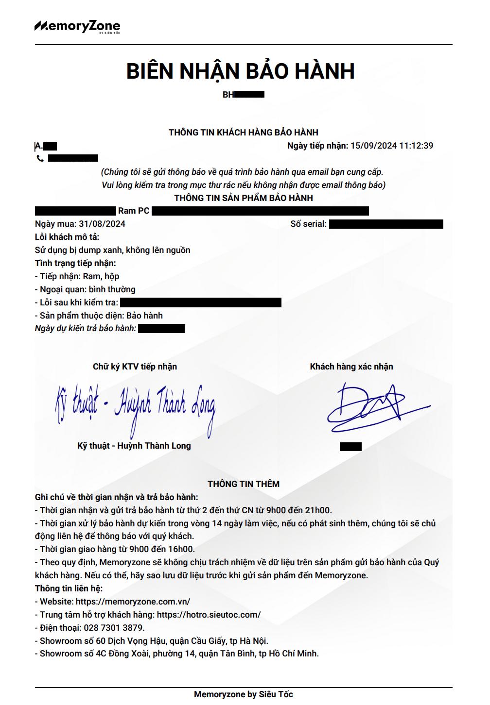 Lưu Ý: Trong trường hợp không còn tem của MemoryZone hoặc tem của MemoryZone bị bong tróc chỉ còn tem bảo hành của nhà sản xuất, nhà phân phối và hãng, MemoryZone sẽ chỉ dẫn quý khách hàng đến địa điểm bảo hành tại nhà sản xuất, hãng, nhà phân phối. Trường hợp mất, bong tróc, rách tem của hãng, nhà sản xuất, nhà phân phối mà chỉ còn tem của MemoryZone, MemoryZone có quyền quyết định từ chối bảo hành sản phẩm, thiết bị của quý khách hàng.