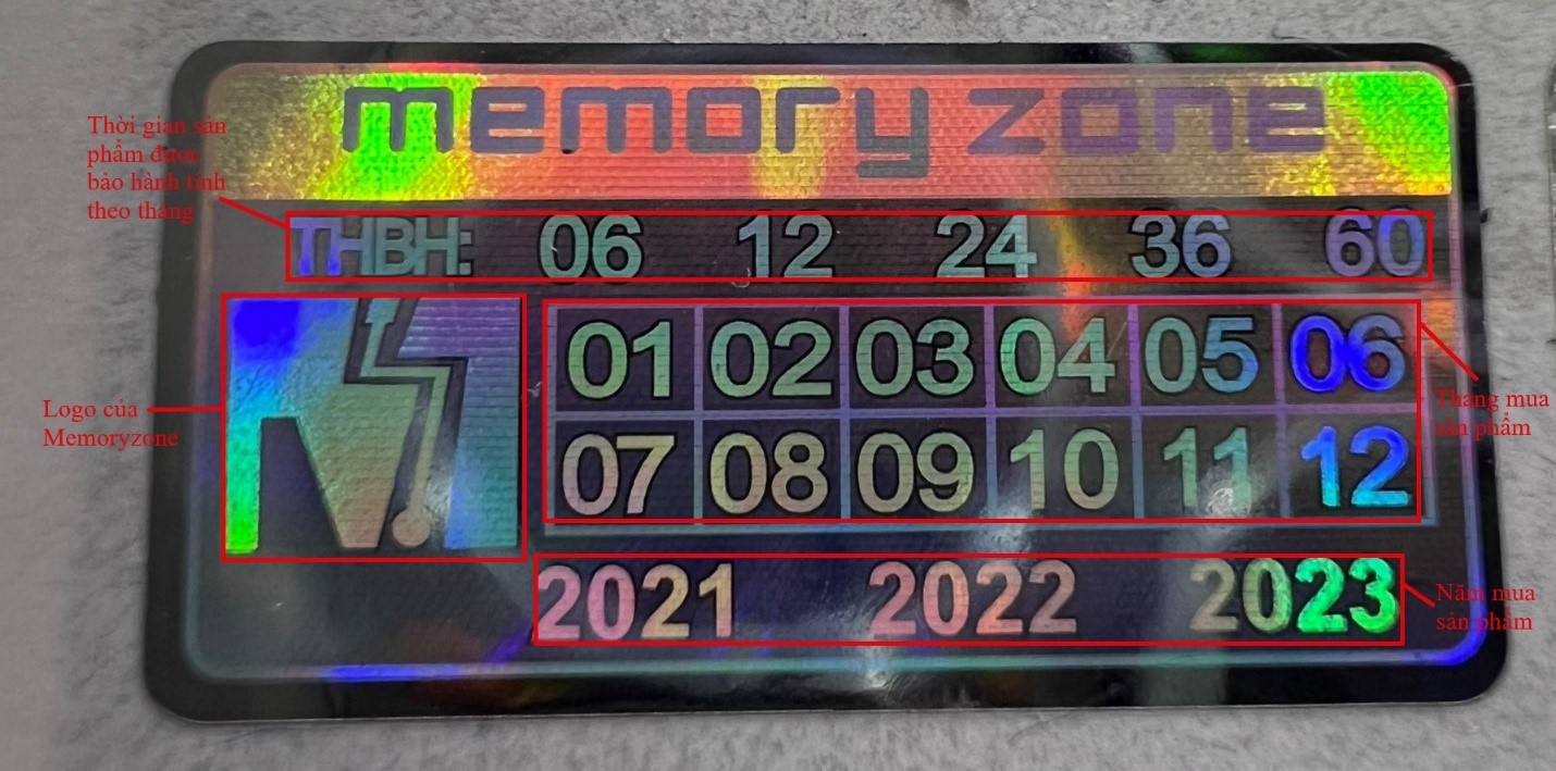 Lưu Ý: Tất cả các sản phẩm, thiết bị có tem của MemoryZone đều có thể hiện rõ các thông tin về thời gian bảo hành của sản phẩm, Quý khách hàng lưu ý khi bảo hành tại MemoryZone vui lòng cung cấp sản phẩm thiết bị còn đủ tem bảo hành và các thông tin rõ ràng trên tem để tránh ảnh hưởng đến quyền lợi khi bảo hành của khách hàng tại MemoryZone.