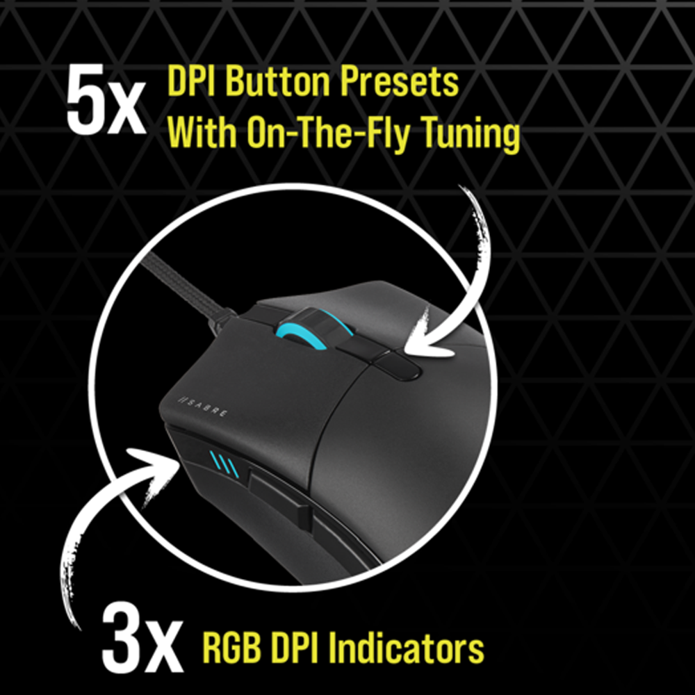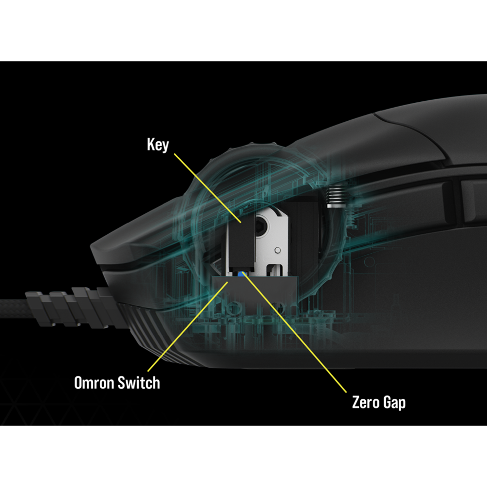 | Nút QuickStrike siêu nhạy Thiết kế ngắn có nghĩa là nhấp chuột nhanh hơn, đó là lý do tại sao SABRE RGB PRO được trang bị Nút CORSAIR QUICKSTRIKE. Việc sử dụng lò xo và bản lề kim loại giúp cân bằng các phím và tạo ra khoảng cách gần như bằng không giữa các nút chuột và Switch OMRON của chúng, đảm bảo tốc độ tuyệt vời, khả năng phản hồi và tính nhất quán với mỗi lần nhấp. |  |