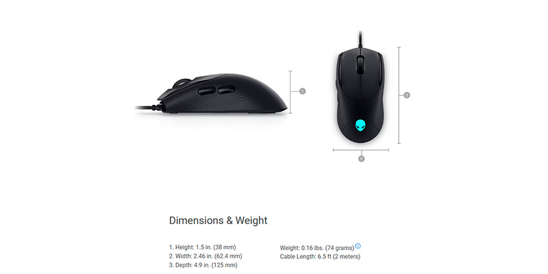Chuột Dell Alienware AW320M AlienFX RGB gây ấn tượng mạnh với tông màu Dark Side of the Moon huyền bí, kết hợp thiết kế công thái học tối giản, phù hợp cho cả người thuận tay trái lẫn tay phải. Kích thước gọn gàng chỉ 2.5 x 4.9 x 1.5 inch, trọng lượng nhẹ 2.61 oz (khoảng 74g) giúp chuột di chuyển linh hoạt và ít gây mỏi khi sử dụng lâu. Dáng cầm thấp, thân chuột mượt và viền bo cong mềm mại giúp người dùng thoải mái trong nhiều phong cách cầm như claw grip, palm hay fingertip. Đây là thiết kế lý tưởng cho những ai yêu thích sự tinh tế nhưng vẫn cần hiệu năng cao trong một ngoại hình nhỏ gọn, hiện đại.