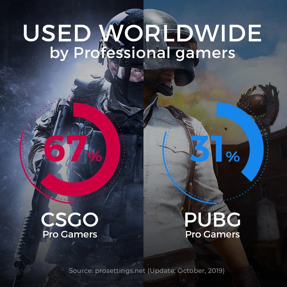 Đỉnh cao của các game FPS Theo thống kê, số lượng game thủ chơi game FPS sử dụng chuột Zowie cực kì khủng khiếp. Có tới 67% số game thủ CS:GO sử dụng chuột Zowie và 31% game thủ PUBG cũng sử dụng dòng chuột này. |