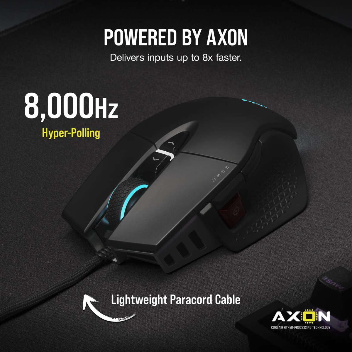 Bộ vi xử lý AXON Chuột Gaming Corsair M65 RGB ULTRA Black sử dụng công nghệ vi xử lý AXON cho tốc độ truyền tín hiệu từ chuột đến PC của bạn nhanh hơn gấp 8 lần bình thường với Polling Rate 8000Hz. |