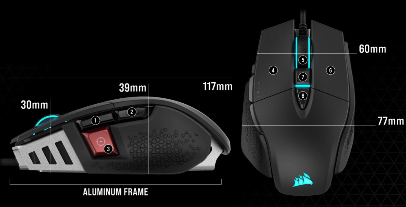 Tám nút có thể tùy chỉnh Các nút bấm trên M65 RGB ULTRA có thể được tùy biến theo ý thích của bạn để phù hợp với từng trò chơi. |
