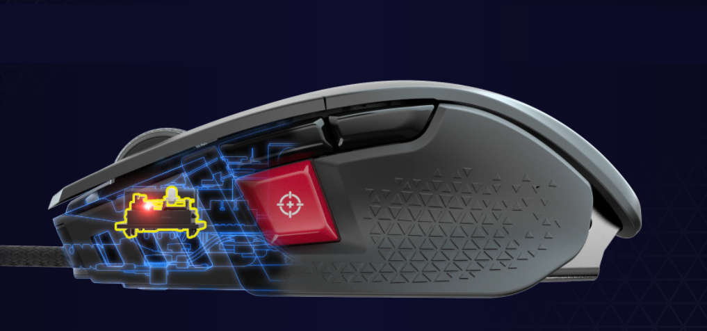 Nút Quickstrike siêu nhạy Chuột Gaming Corsair M65 RGB ULTRA Black sử dụng Switch Omron được đánh giá là siêu bền với hơn 50 triều lần nhấp chuột kết hợp cùng công nghệ Corsair Quickstrike mang lại phản hồi với thời gian cực nhanh để bạn dễ dàng dẫn trước đối thủ. |