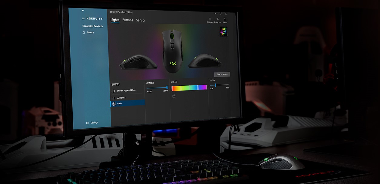 Dễ tùy chỉnh bằng phần mềm HyperX NGENUITY Tạo macro, tùy biến ánh sáng RGB và DPI rồi lưu vào bộ nhớ riêng của Pulsefire FPS Pro. |