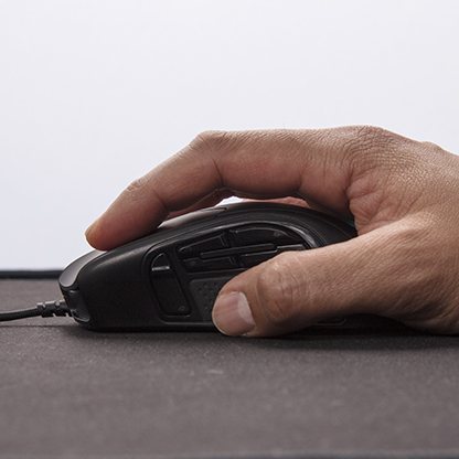 Mười một nút có thể tùy chỉnh Chuột được thiết kế cho tốc độ cao với 5 nút bên được đặt ở vị trí thuận lợi để cầm chuột tối ưu và chức năng nhấp trái/phải bằng nút cuộn nghiêng để biến những lệnh phức tạp thành đơn giản. |