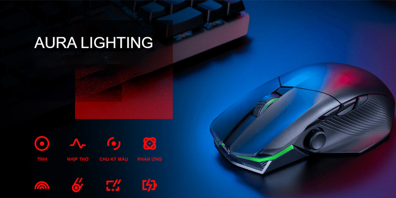 Nâng tầm phong cách thông qua vô số màu sắc hoặc hiệu ứng cài sẵn với hệ thống đèn Aura Sync RGB.