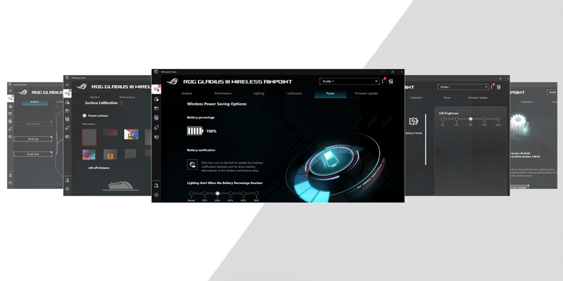 Giao diện người dùng trực quan của Armory Crate cho phép bạn dễ dàng điều chỉnh chuột ROG Gladius III Wireless AimPoint cho phù hợp với phong cách chơi của bạn — điều chỉnh cài đặt hiệu năng và hiệu chỉnh bề mặt, nút chương trình và bản đồ, tùy chỉnh hiệu ứng ánh sáng, v.v. Bạn thậm chí có thể theo dõi số liệu thống kê phần cứng trong khi chơi game để phân tích dữ liệu.