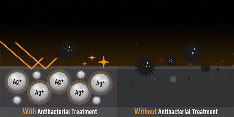 Để giữ cho Chuột Gaming không dây Asus TUF Gaming M4 Wireless của bạn luôn vệ sinh, bề mặt và nút bên hông của TUF Gaming M4 Wireless được bảo vệ bằng phương pháp xử lý ion bạc bảo vệ kháng khuẩn mới của ASUS. Các ion bạc tích điện dương (Ag+) liên kết với thành tế bào của vi khuẩn và vi khuẩn tích điện âm, phá vỡ các chức năng bên trong của chúng và ngăn chặn sự phát triển thêm. Kháng khuẩn Guard đã được khoa học chứng minh là có tác dụng ức chế sự phát triển của vi khuẩn hơn 99%* trong khoảng thời gian 24 giờ. Bảo vệ kháng khuẩn giúp giữ cho bề mặt chuột của bạn sạch sẽ và vệ sinh, có khả năng làm giảm sự lây lan của vi khuẩn có hại.