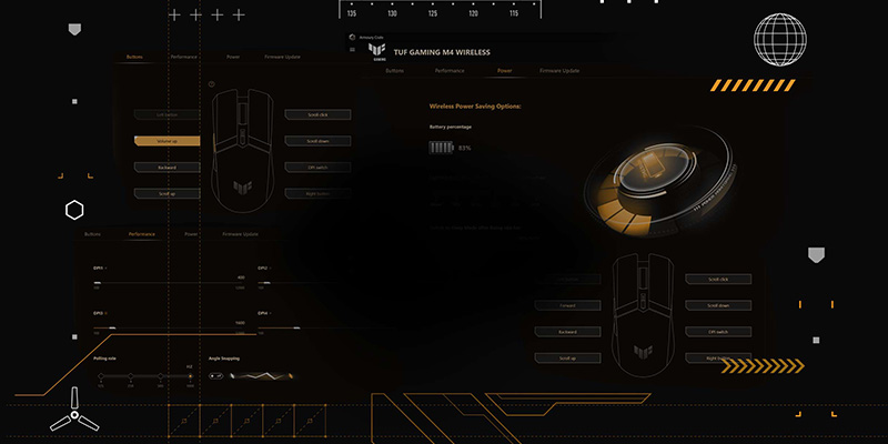 Phần mềm Armory Crate cung cấp các khả năng điều khiển mở rộng và giao diện người dùng trực quan cho phép bạn điều chỉnh Chuột Gaming không dây Asus TUF Gaming M4 Wireless để phù hợp với cách chơi của bạn. Tạo hồ sơ, nút bản đồ, điều chỉnh cài đặt hiệu suất, v.v.