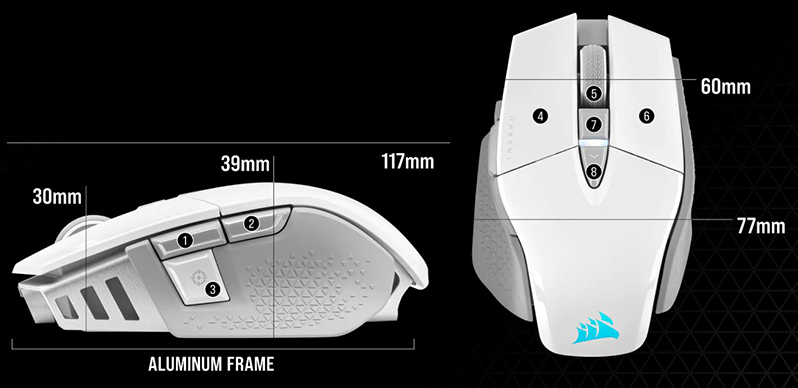 Tám nút có thể tùy chỉnh Các nút bấm trên Chuột Gaming không dây Corsair M65 RGB ULTRA có thể được tùy biến theo ý thích của bạn để phù hợp với từng trò chơi. |