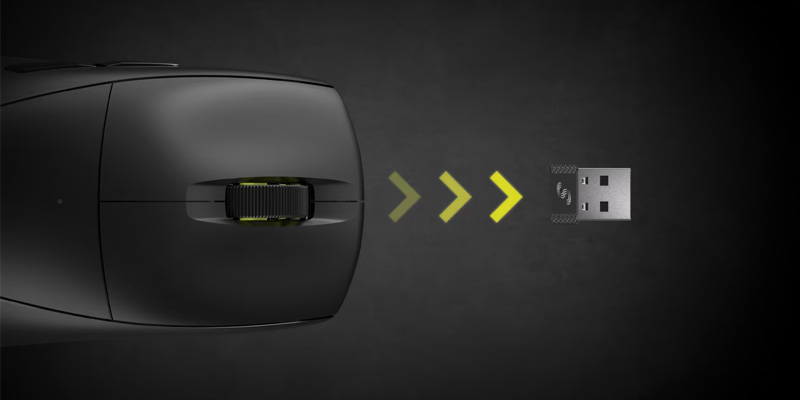 Chuột Gaming không dây Corsair M75 AIR được thiết lập với khả năng kết nối đa dạng. Ta có thể kết nối không dây Bluetooth hoặc 2.4GHz SLIPSTREAM rất tiện lợi trong nhiều trường hợp.