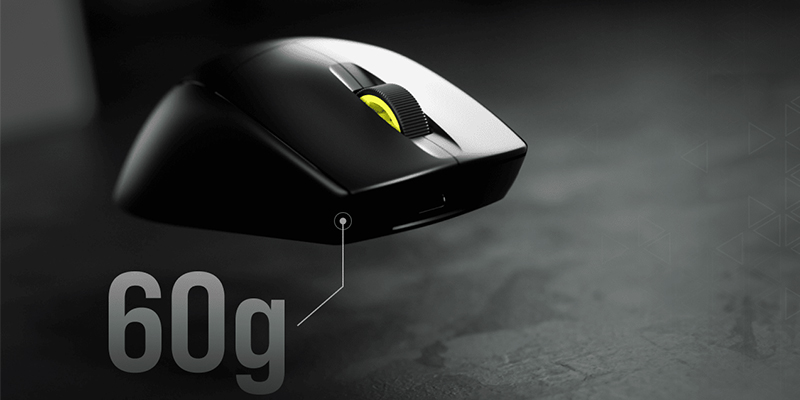 Chuột Gaming không dây Corsair M75 AIR sở hữu được vẻ ngoài hiện đại, kết hợp cùng gam màu đen mạnh mẽ. Đồng thời chuột còn có kích thước khá nhỏ gọn và chỉ nặng 60g, với thiết kế thông minh ôm trọn vào lòng bàn tay, đem đến sự tiện lợi và thoải mái cho bạn khi chơi game.