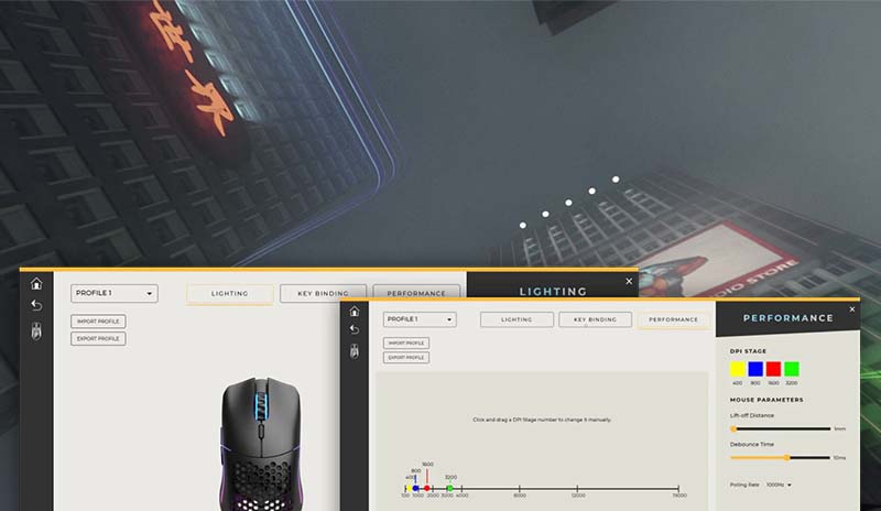 Glorious CORE Phần mềm Glorious CORE được phát triển để cung cấp cho bạn toàn quyền kiểm soát các giao diện sử dụng để tùy chỉnh ánh sáng, các nút, LOD, Polling Rate, DPI và các cài đặt khác. |