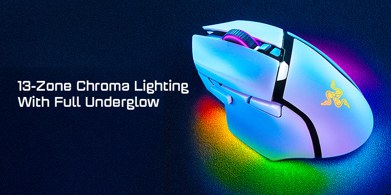 Hình dáng ergonomic đặc trưng của dòng Basilisk giúp ôm tay tự nhiên, hỗ trợ cổ tay và ngón cái, mang lại cảm giác thoải mái trong thời gian dài. Chuột sở hữu 13 vùng đèn RGB độc lập, có thể tùy chỉnh qua Razer Synapse, với 16.8 triệu màu và hơn 300 hiệu ứng tích hợp sẵn. Nhờ công nghệ Razer Chroma RGB, ánh sáng có thể tương tác trực tiếp với hàng trăm tựa game, tạo nên trải nghiệm đắm chìm đậm chất Razer.